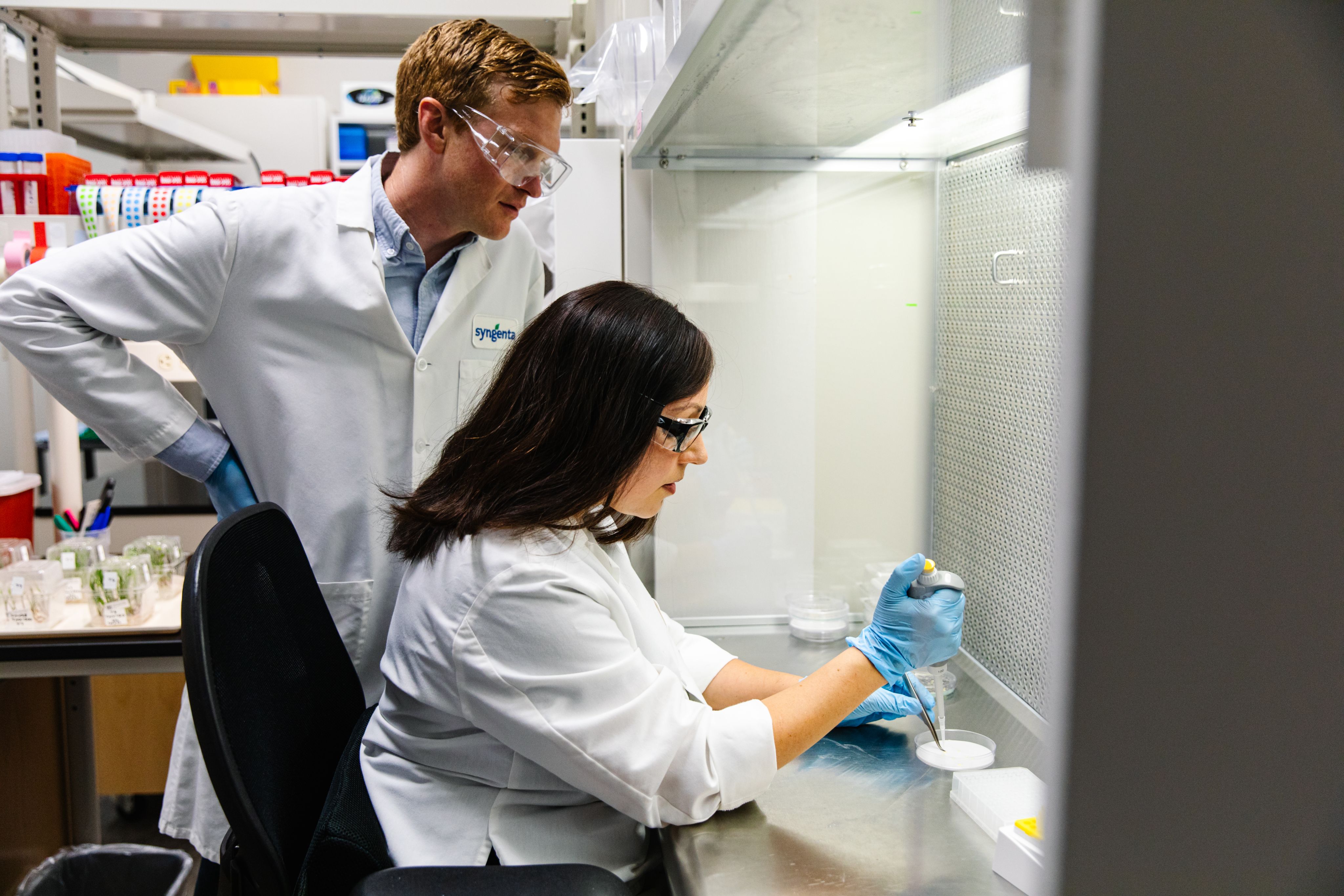 Jodi Avila, Trait Delivery Innovation Scientist, at work in the Syngenta Seeds lab in Research Triangle Park, North Carolina, USA.